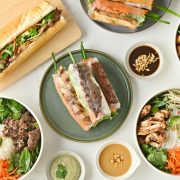 Customize your own rice noodle bowl by picking up to two proteins and toppings. Choose up to two sauces!